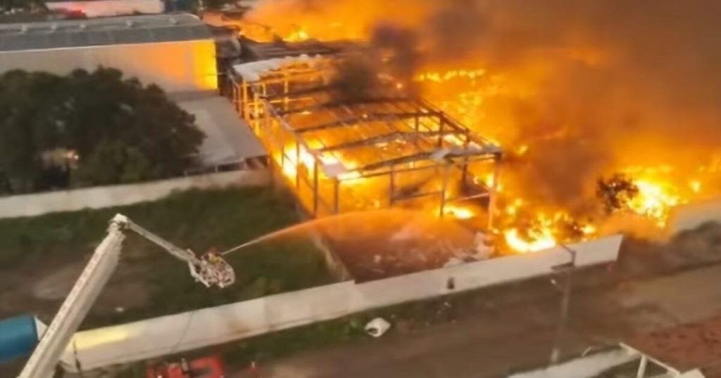 Uma fábrica de reciclagem foi destruída pelo fogo no Distrito Industria de em Santa Rita, nas proximidades do presídio. padrão, região metropolitana da Capital. As chamas começaram por volta do fim da noite e só foram controladas por equipes do Corpo de Bombeiros na manhã deste domingo (9).
